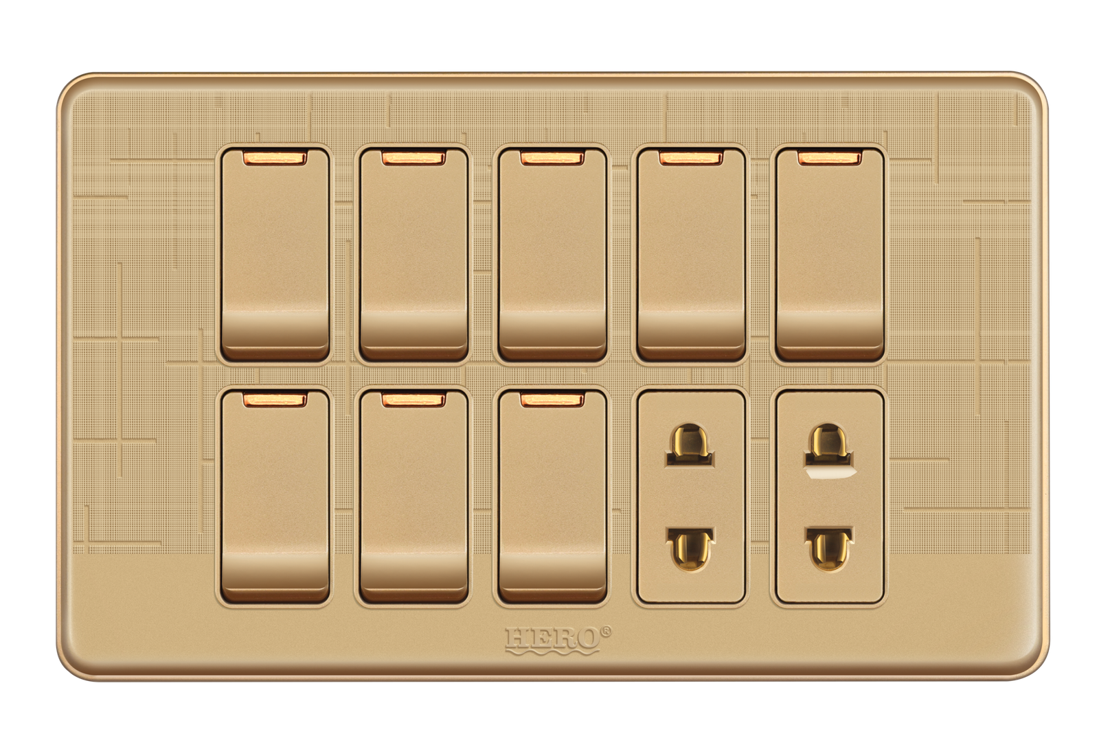 GG-82 Glory Gold 8 Switch + 2 Socket Plate