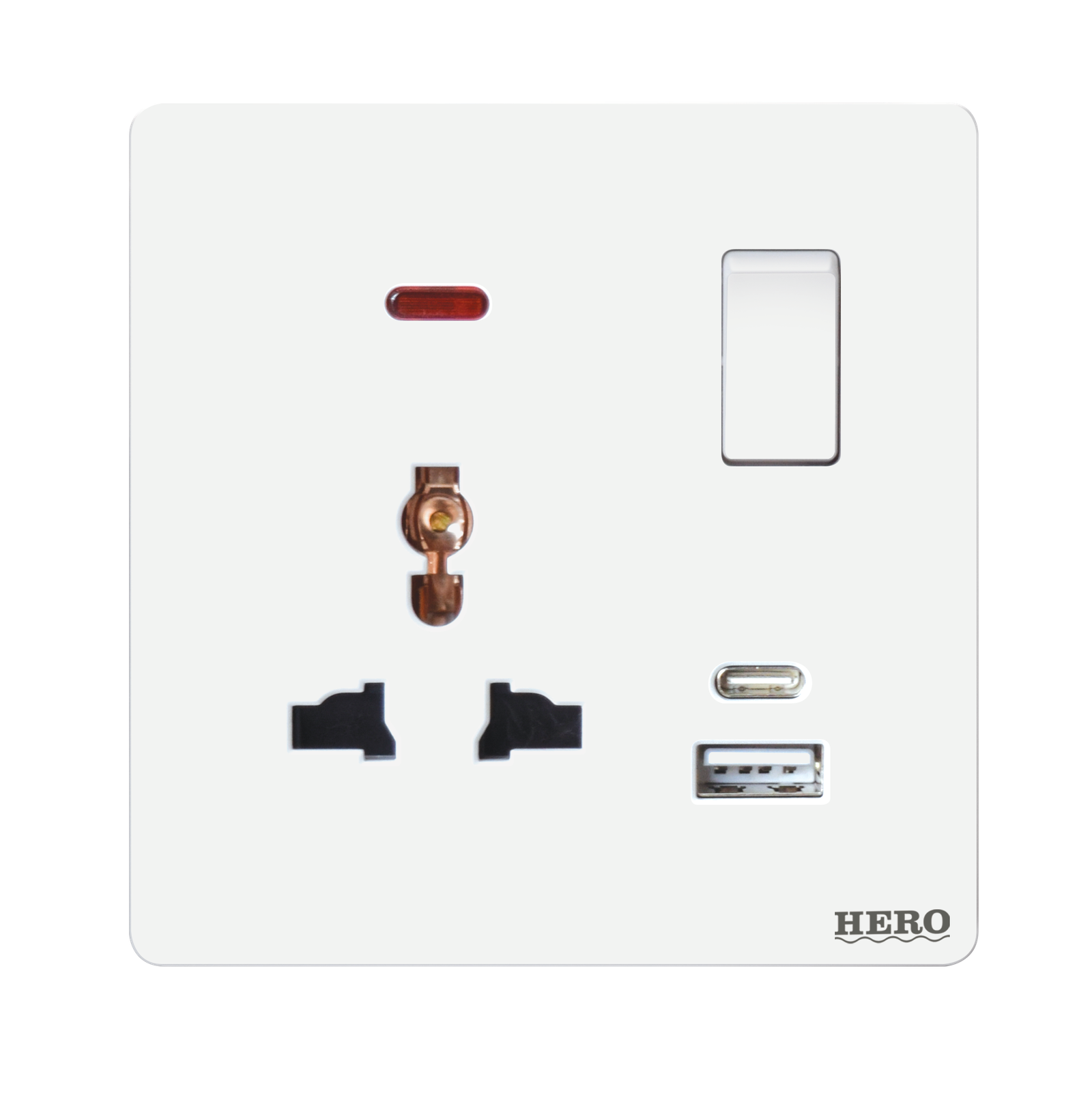 SW-212 Slender White Light Plug 13A With USB + C Type 2.1A